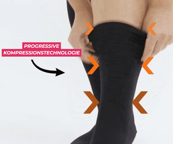 Diese sanfte, progressive Kompression sorgt für eine gleichmäßige Unterstützung vom Knöchel bis zur Wade – bequem genug für den ganzen Tag und gleichzeitig wirksam gegen Schwellungen und Beschwerden.