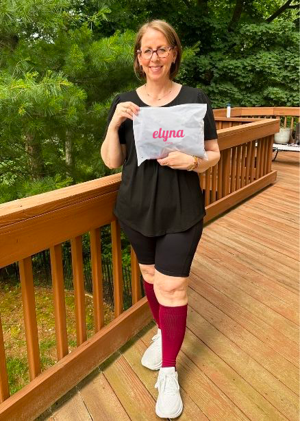 Deshalb sind Elyna-Socken aus einem superelastischen Stoff gefertigt, der es ermöglicht, sie mühelos an- und auszuziehen.